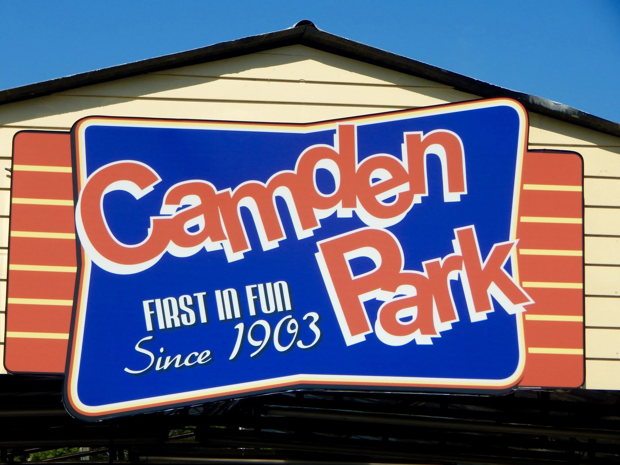 The bus dropped us off at the front gate of Camden Park and the first thing we noticed was an absolutely glorious neon entrance sign.