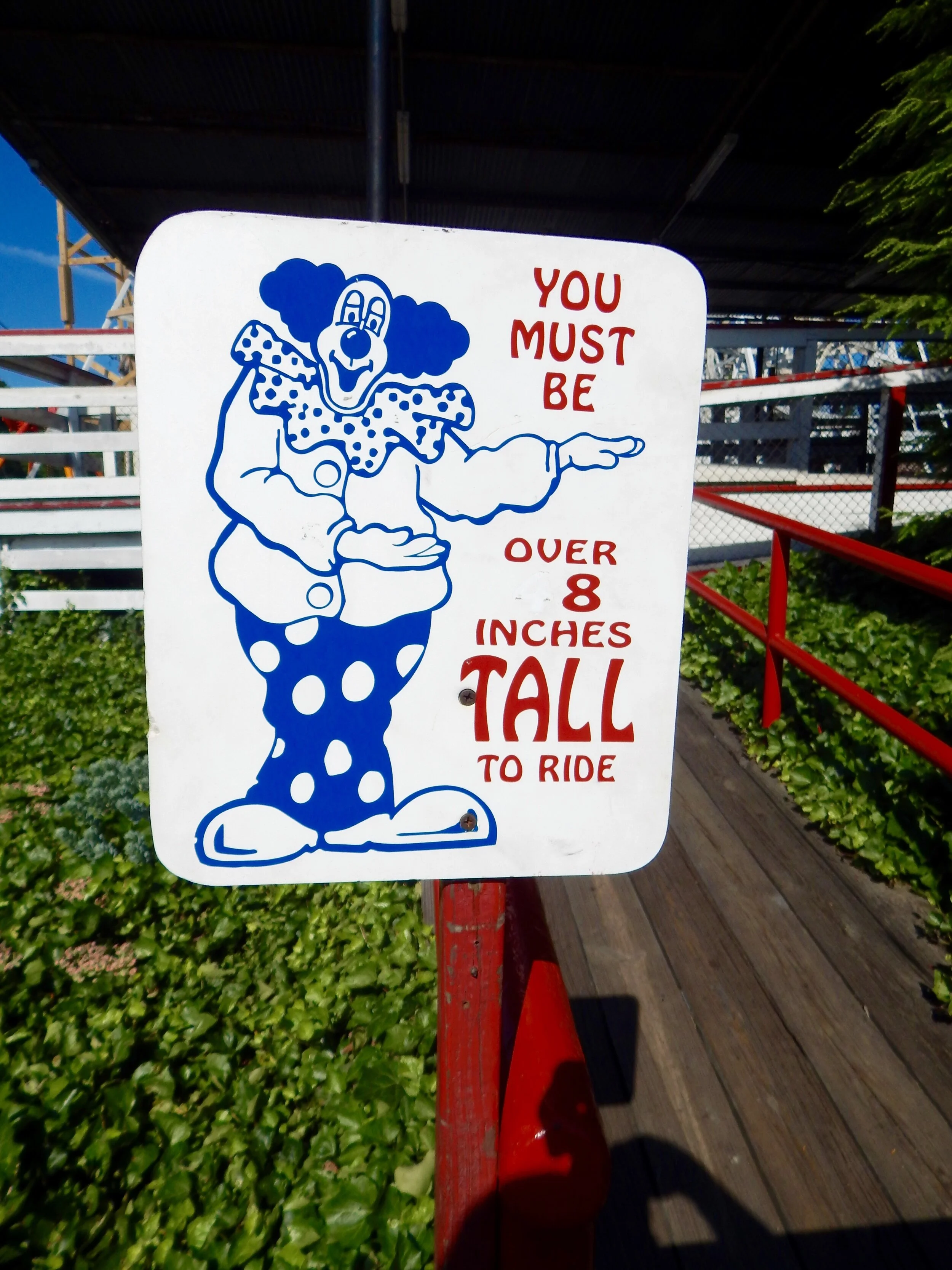 This height check sign is missing a digit, unless you really only need to be 8 inches tall to ride.