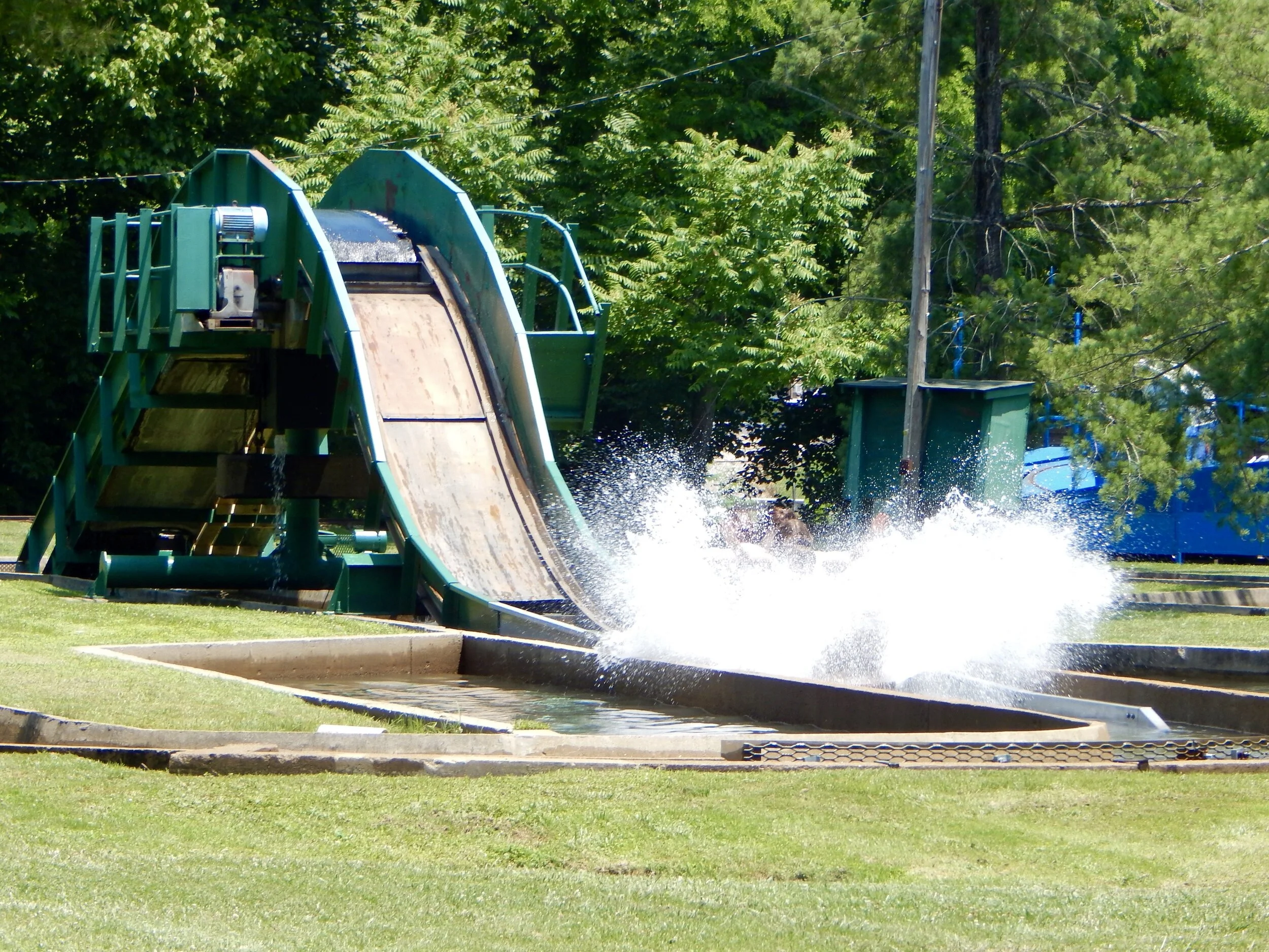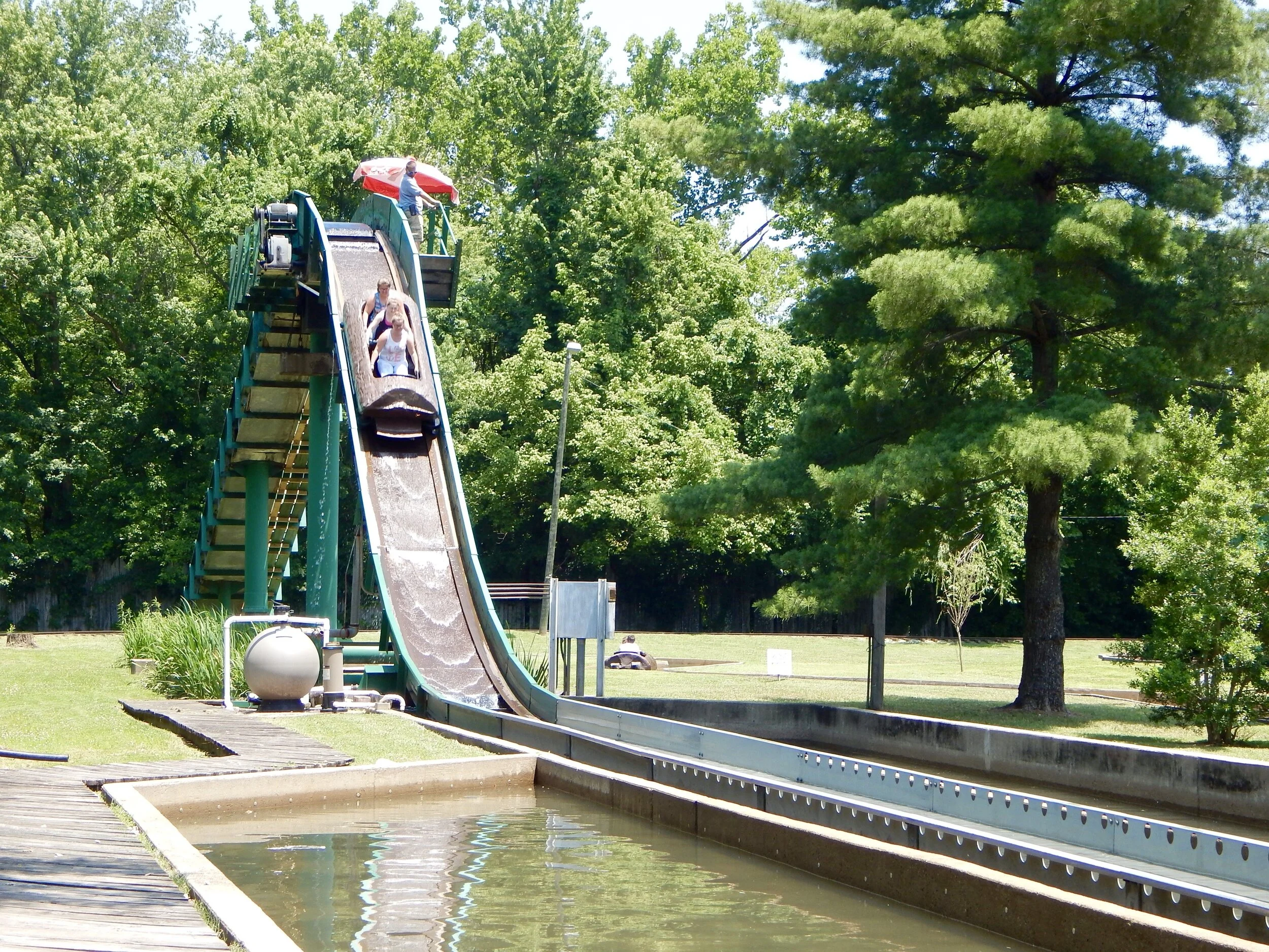 or cool off on the log flume. This flume isn’t a trough on stilts like most, but a cement channel built into the ground. There’s the obligatory big plunge at the end of the ride...