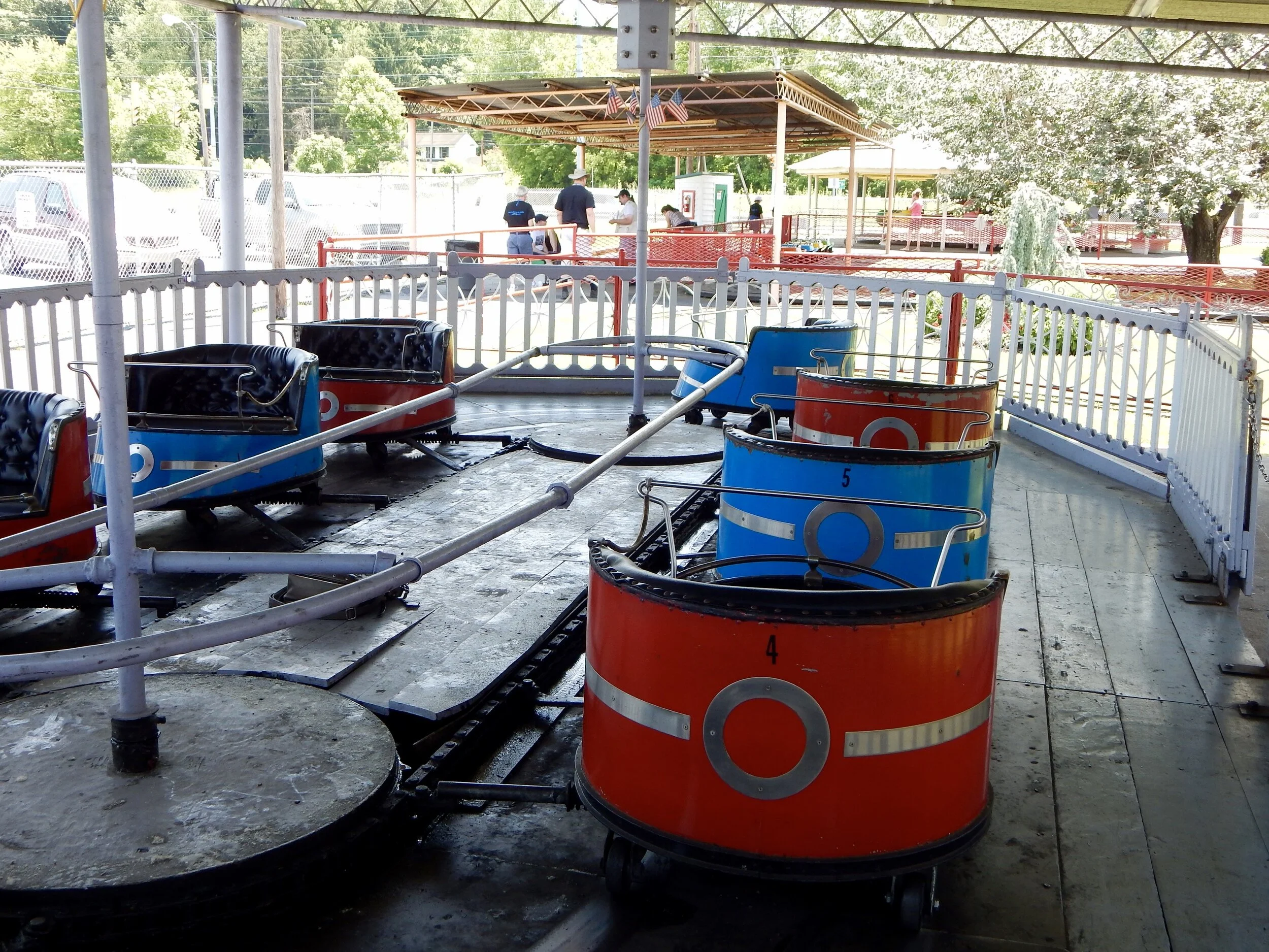 Firstly, how about these trains? Nicely painted, classic, roomy, and they have buzz bars. No seat belts to worry about or hold up loading times. Sit down and go.